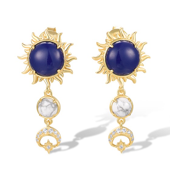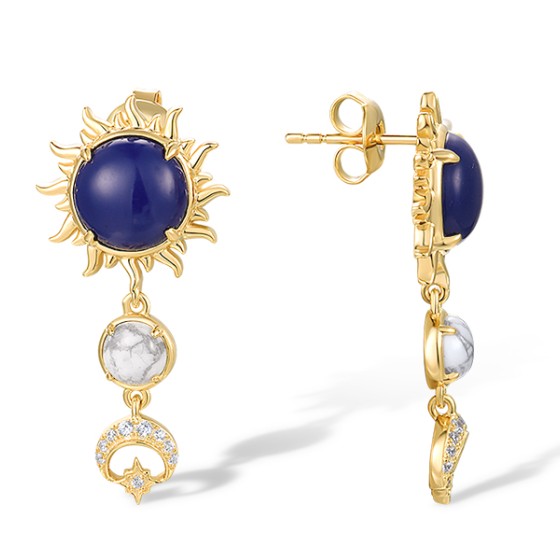 Sterling Silver w/ Yellow Plating Earrings Created Lapis,White Cubic Zirconia,White Magnesite (E318575CLZGSY925)