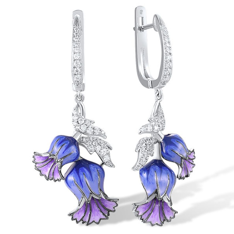 Sterling Silver w/ Black White Plating Earrings Enamel,White Cubic Zirconia (E317376ENASK925)