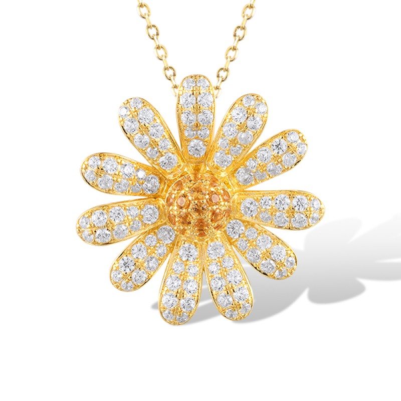 Sterling Silver w/ Yellow Plating Pendant White Cubic Zirconia,Yellow Nano Crystal (P320387YWZSY925)