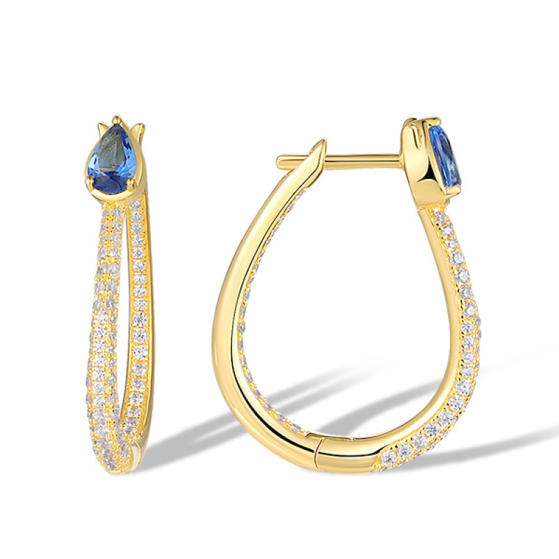 Sterling Silver w/ Yellow Plating Earrings Blue Glass,White Cubic Zirconia (E319098BLGZSY925)