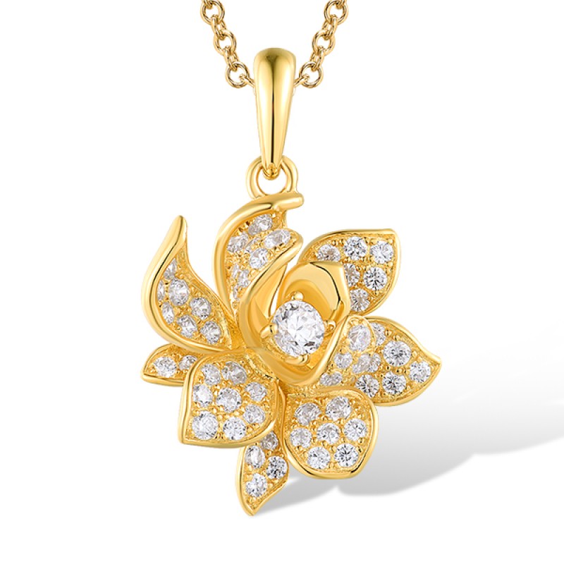 Sterling Silver w/ Yellow Plating Pendant White Cubic Zirconia (P318881WCZSY925)