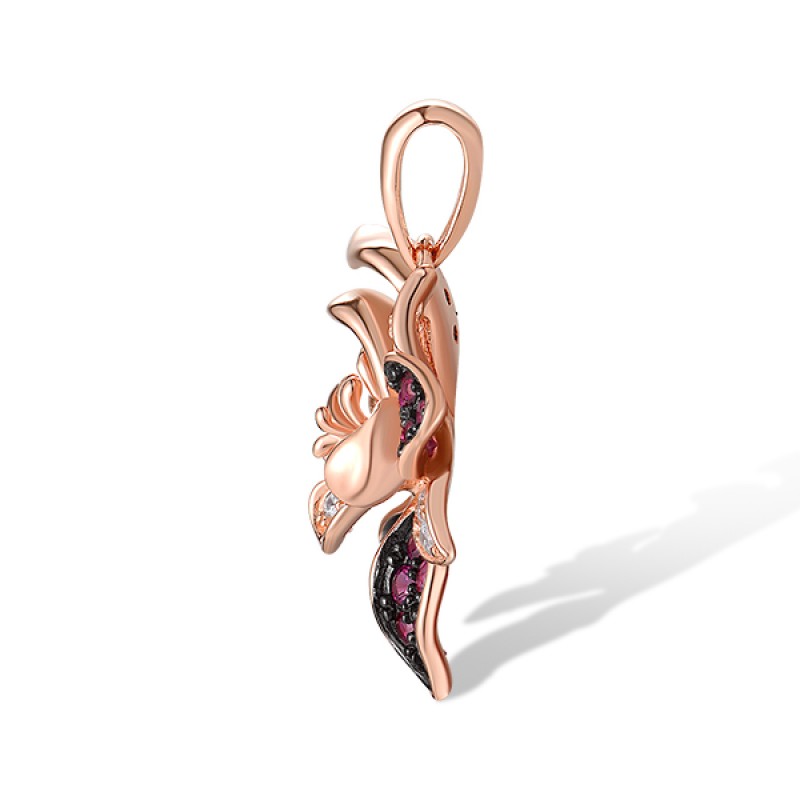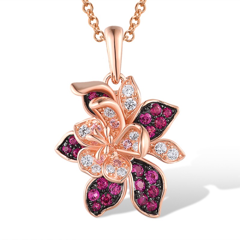 Sterling Silver w/ Rose Black Plating Pendant Created Pink Sapphire,Created Ruby,White Cubic Zirconia (P318880CPRZSD925)