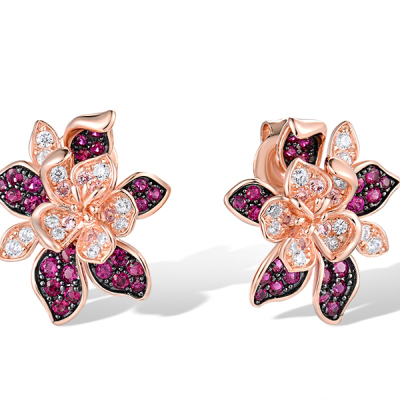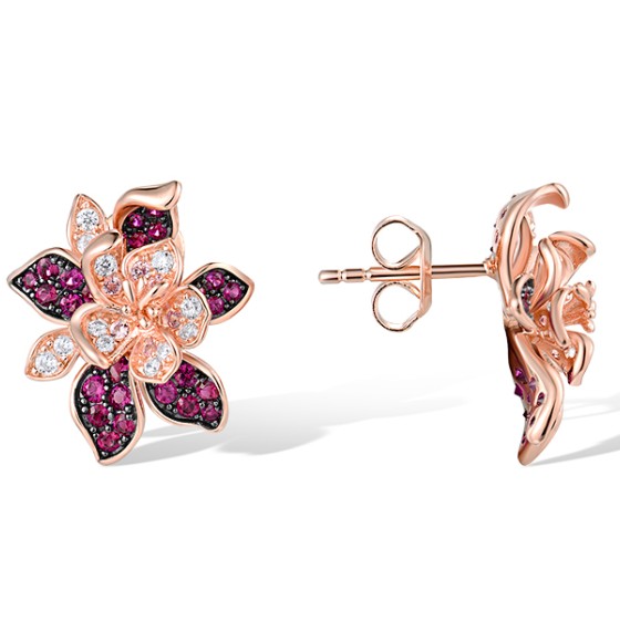 Sterling Silver w/ Rose Black Plating Earrings Created Pink Sapphire,Created Ruby,White Cubic Zirconia (E318880CPRZSD925)