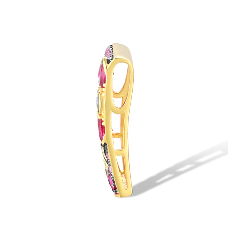 Sterling Silver w/ Yellow Black Plating Pendant Created Pink Sapphire,Created Ruby,White Cubic Zirconia (P318234CPRZSC925)