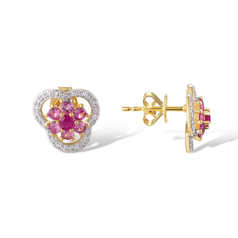 14KYW Earrings Diamond,Pink Sapphire,Ruby (E320498PRU14KYW)