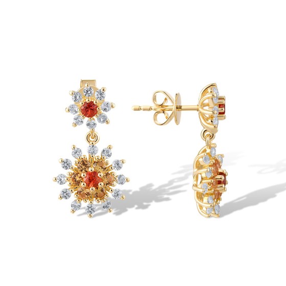 14KY Earrings Orange Sapphire,White Sapphire,Yellow Sapphire (E320493OYWS14KY)