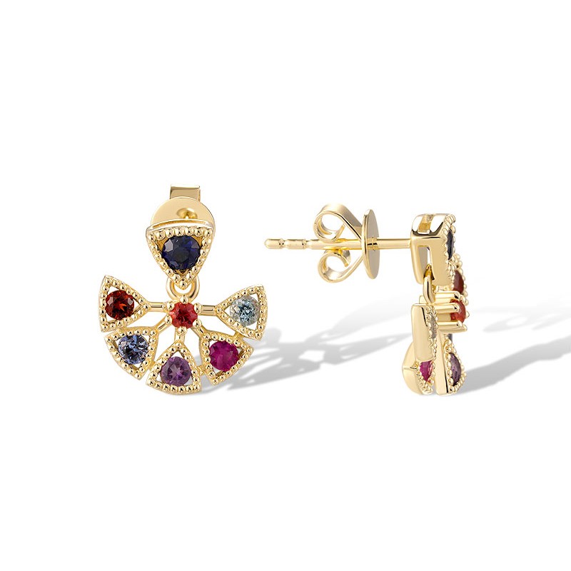14KY Earrings Amethyst,Blue Sapphire,Blue Topaz (Swiss Blue),Garnet,Orange Sapphire,Ruby (E320480MUL14KY)