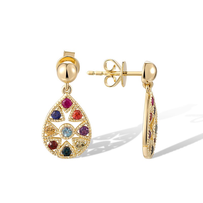 14KY Earrings Amethyst,Blue Sapphire,Blue Topaz (Swiss Blue),Garnet,London Blue Topaz,Orange Sapphire,Peridot,Ruby,Yellow Sapphire (E320478MUL14KY)