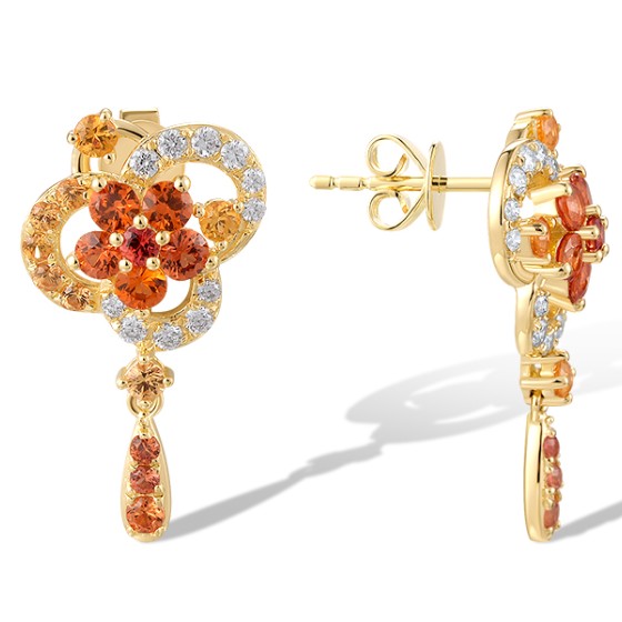 14KY Earrings Diamond,Orange Sapphire,Yellow Sapphire (E320140OYS14KY)