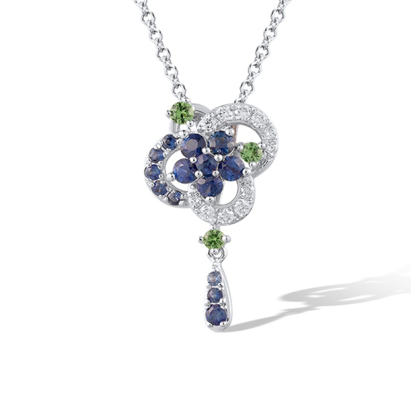 - Blue Sapphire 14pc 0.645ct ,Diamond 11pc 0.136ct ,Green Garnet 3pc 0.130ct