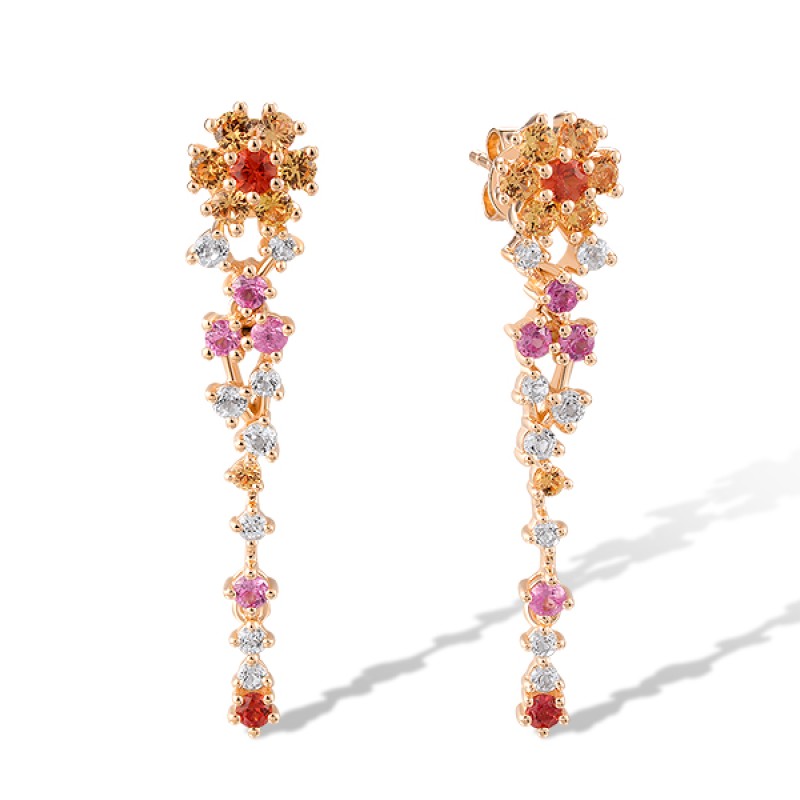 14KR Earrings Orange Sapphire,Pink Sapphire,White Topaz,Yellow Sapphire (E320139MUL14KR)
