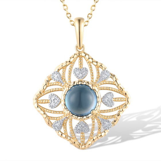 14KYW Pendant Diamond,London Blue Topaz (P319747LDB14KYW)