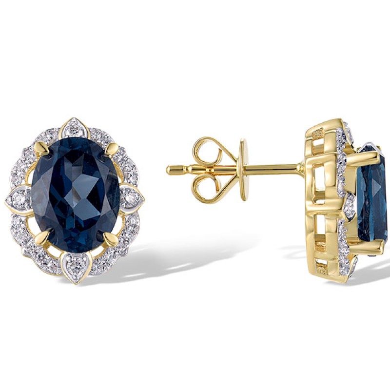 14KYW Earrings Diamond,London Blue Topaz (E319045LDB14KYW)