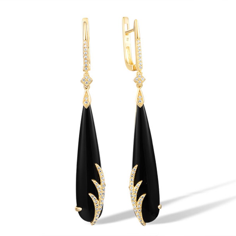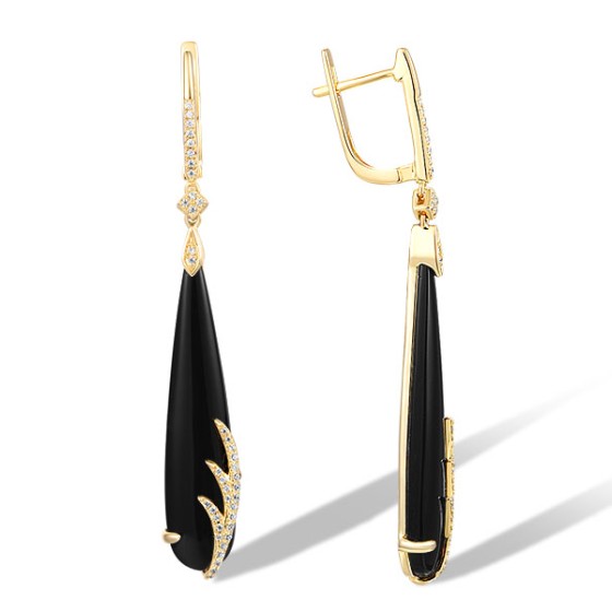 14KY Earrings Black Agate,Diamond (E317109BAG14KY)