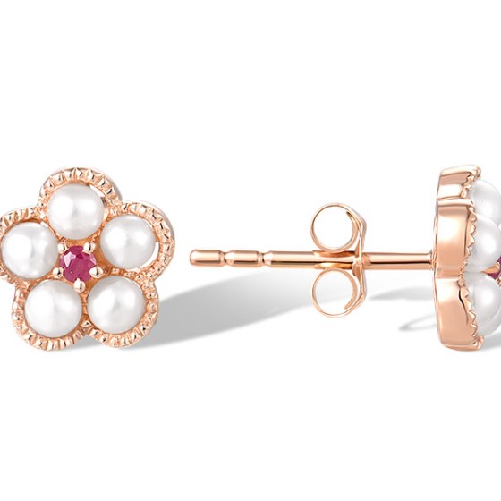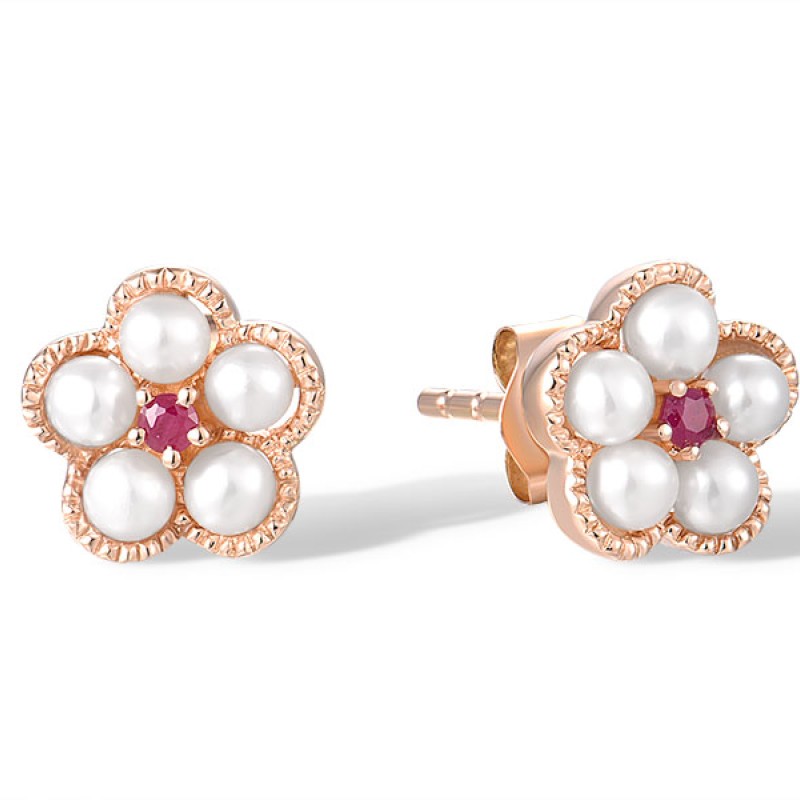 14KR Earrings Fresh Water White Pearl,Ruby (E315054FRY14KR)