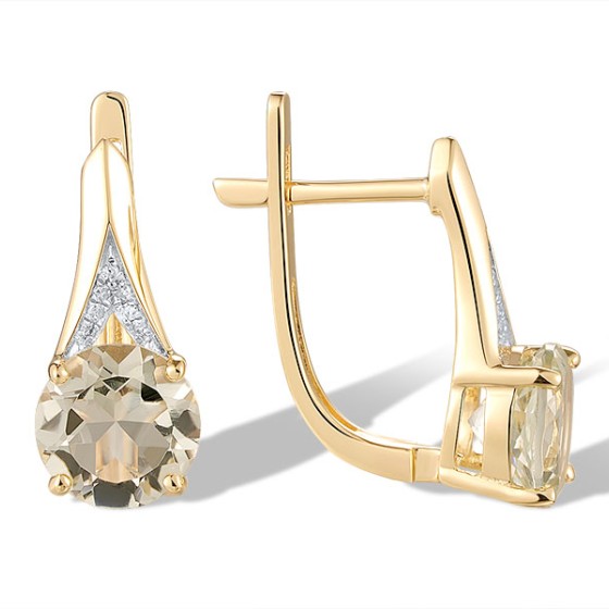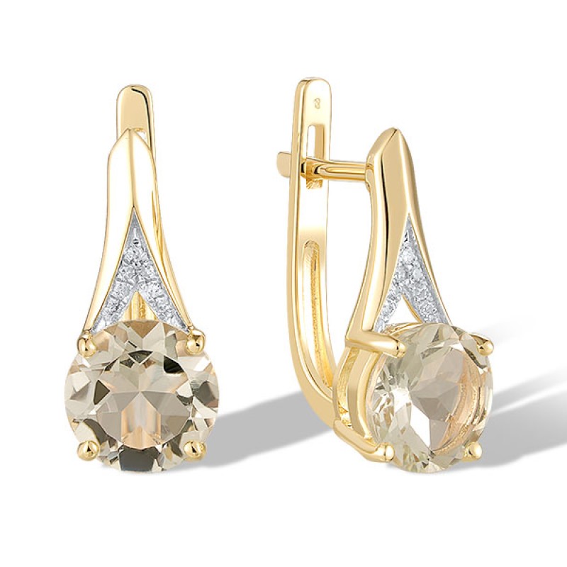 14KYW Earrings Diamond,Prasiolite (Green Amethyst) (E314151GAM14KYW)