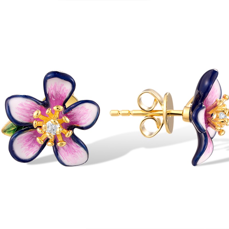 Sterling Silver w/ Yellow Plating Earrings Enamel,White Cubic Zirconia (E320466ENASY925)