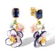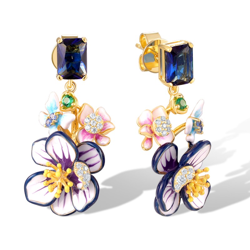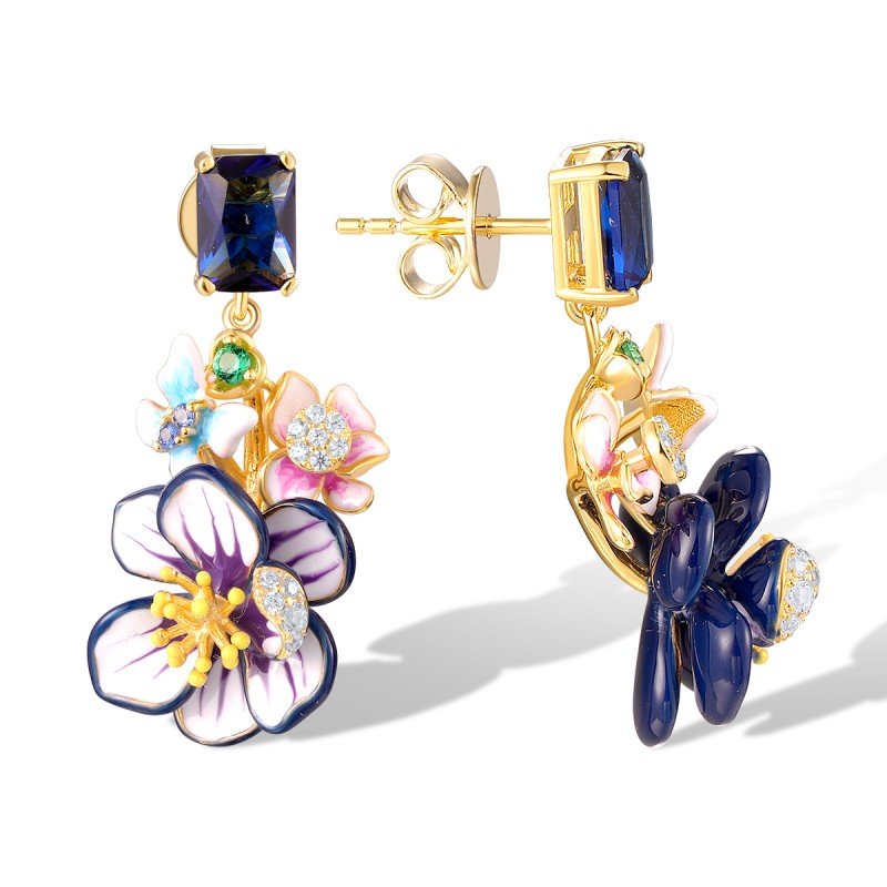 Sterling Silver w/ Yellow Plating Earrings Enamel,Green Spinel,Blue Glass,White Cubic Zirconia,Blue Nano Cubic Zirconia (E320362ENASY925)