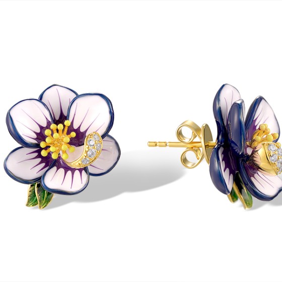 Sterling Silver w/ Yellow Plating Earrings White Cubic Zirconia,Enamel (E320351ENASY925)