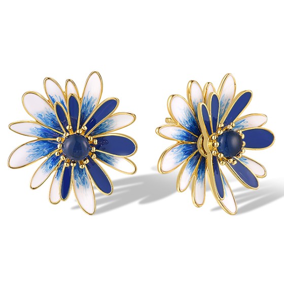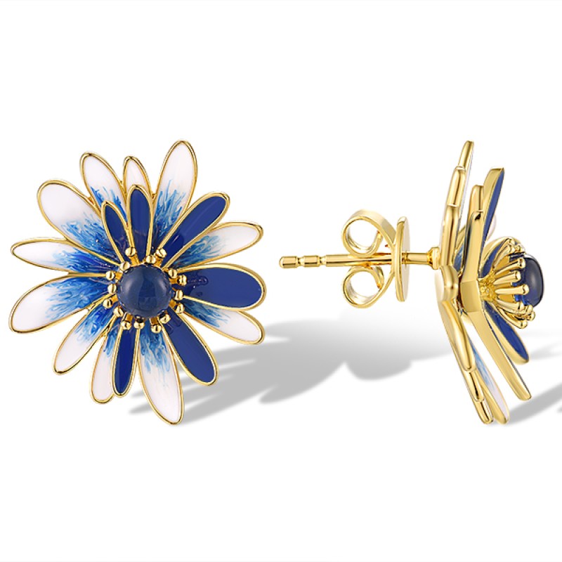 Sterling Silver w/ Yellow Plating Earrings Enamel,Blue Glass (E320059ENA1SY925)