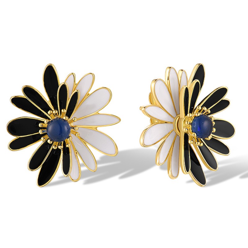 Sterling Silver w/ Yellow Plating Earrings Blue Glass,Enamel (E320059ENASY925)