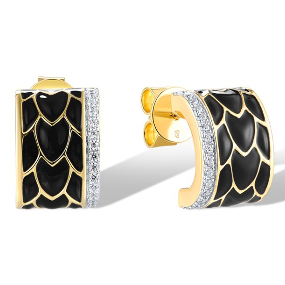 Sterling Silver w/ Ionic Yellow Plating Earrings Enamel,White Cubic Zirconia (E320019ENASP925)