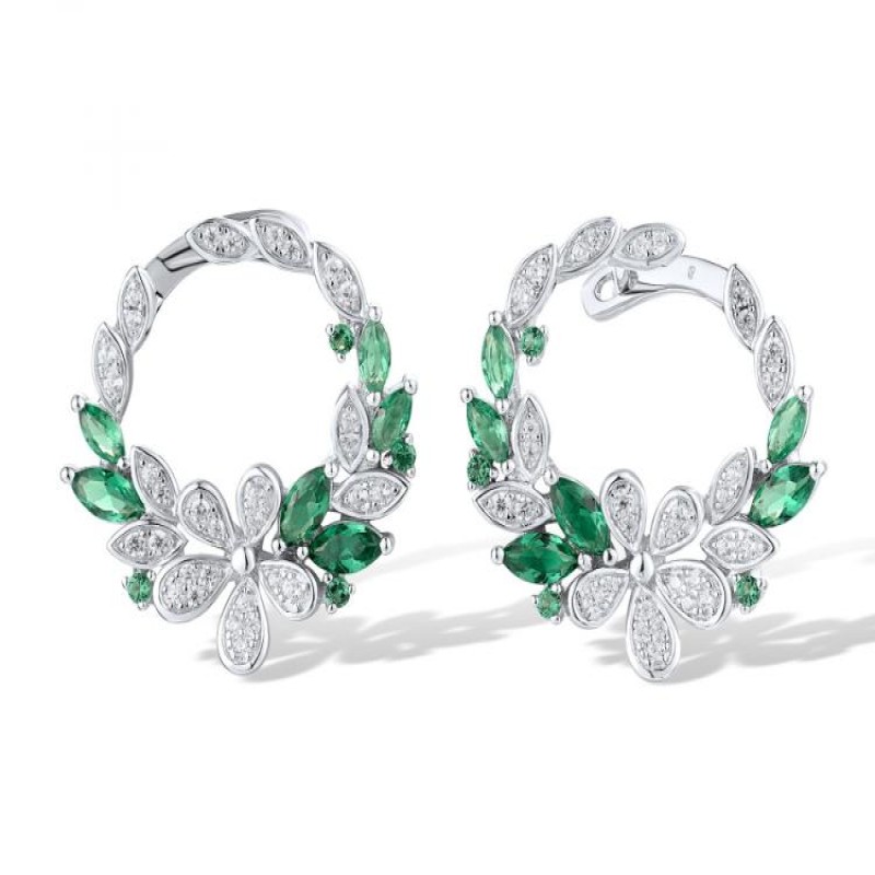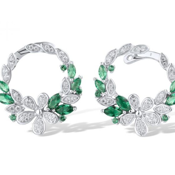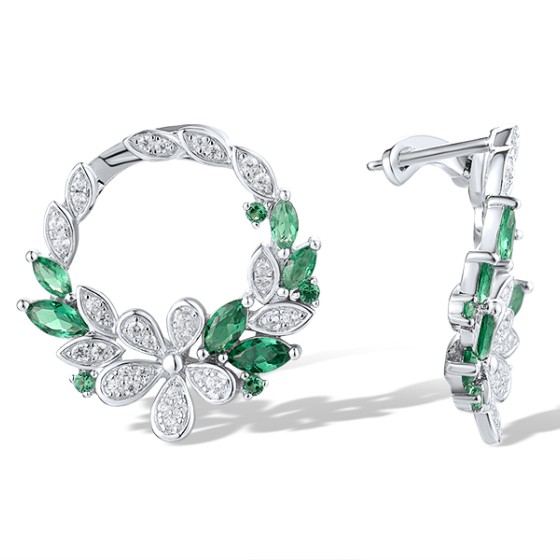 Sterling Silver Earrings Green Spinel,White Cubic Zirconia (E319169GSZSL925)