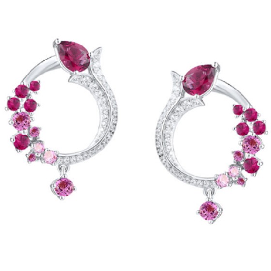 Sterling Silver Earrings Red Nano Crystal,White Cubic Zirconia,Created Pink Sapphire (E319162CPZRSL925)