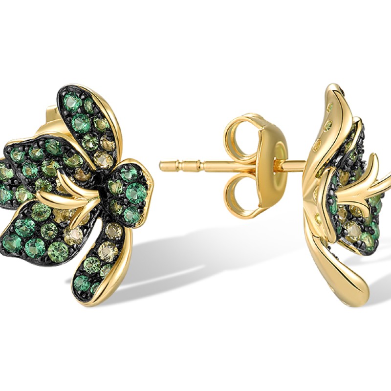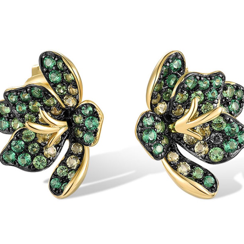 Sterling Silver w/ Yellow Black Plating Earrings Green Nano Cubic Zirconia (Per,Green Spinel (E318883GSNZSC925)
