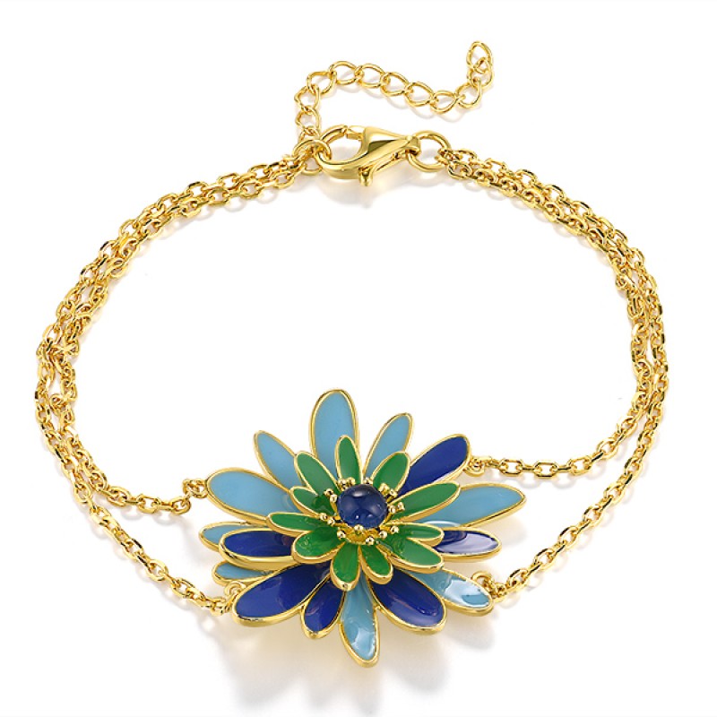 Sterling Silver w/ Yellow Plating Bracelet Blue Glass,Enamel (B319877ENASY925)