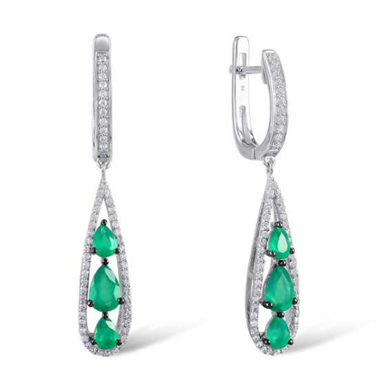 Sterling Silver w/ Black White Plating Earrings Green Glass,White Cubic Zirconia (E303246SGRGZSK925)