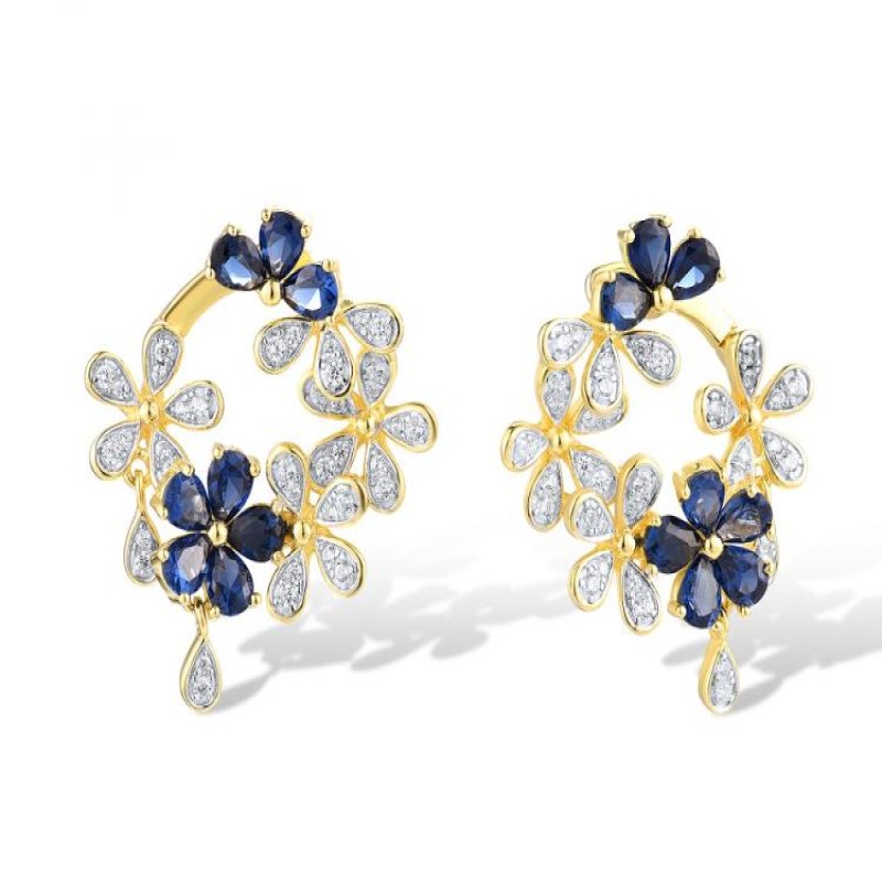 Sterling Silver w/ Ionic Yellow Plating Earrings Blue Nano Cubic Zirconia,White Cubic Zirconia (E319170BZZSP925)