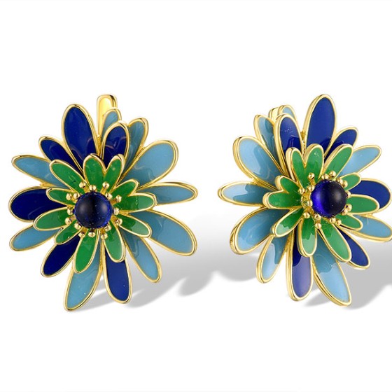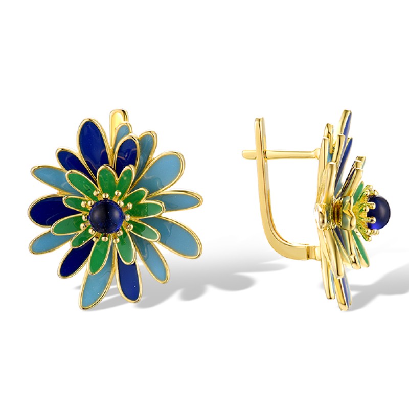 Sterling Silver w/ Yellow Plating Earrings Blue Glass,Enamel (E319877ENASY925)