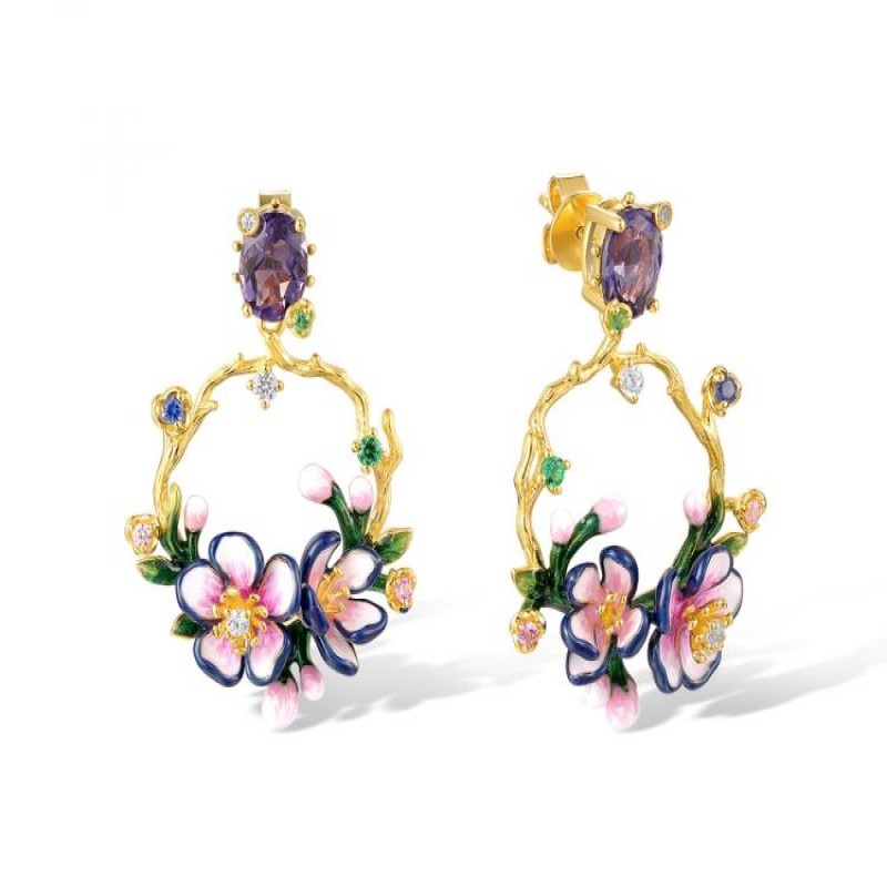 Sterling Silver w/ Yellow Plating Earrings Blue Nano Cubic Zirconia,Created Pink Sapphire,Enamel,Green Spinel,Pink Cubic Zirconia,Purple Glass,White Cubic Zirconia (E320358ENASY925)