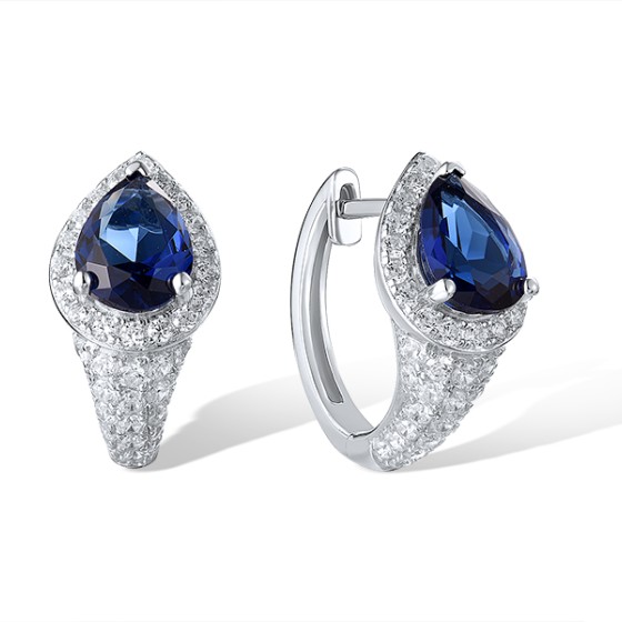 Sterling Silver Earrings Blue Glass,White Cubic Zirconia (E319055BLGZSL925)