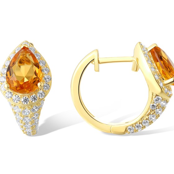 Sterling Silver w/ Yellow Plating Earrings White Cubic Zirconia,Yellow Glass (E319055YGZSY925)