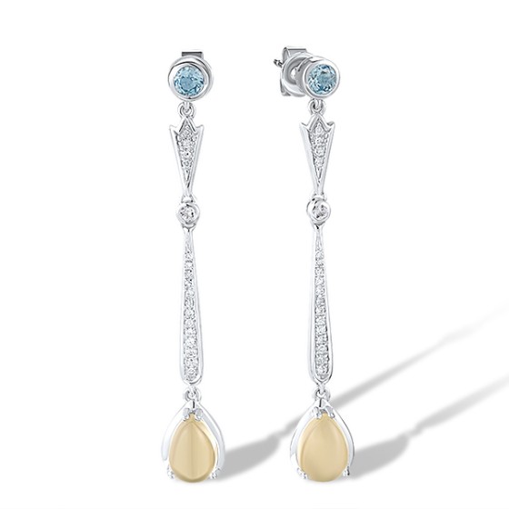 14KW Earrings Blue Topaz (Swiss Blue),Diamond,Lemon Quartz,White Topaz (E316721BLWT14KW)