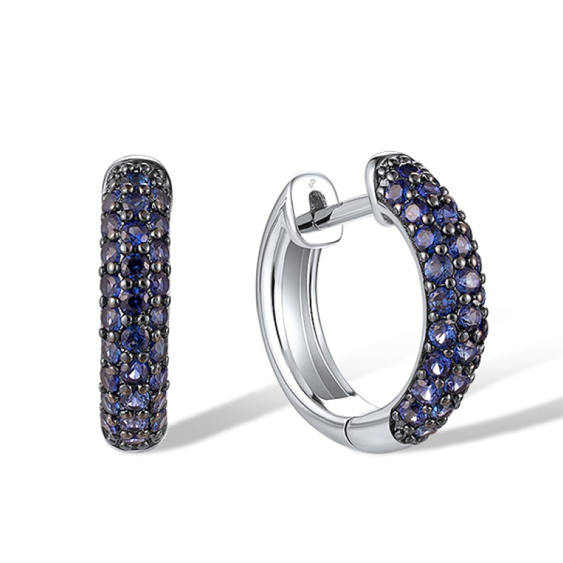 Sterling Silver w/ Black White Plating Earrings Created Sapphire (E321024CRSSK925)