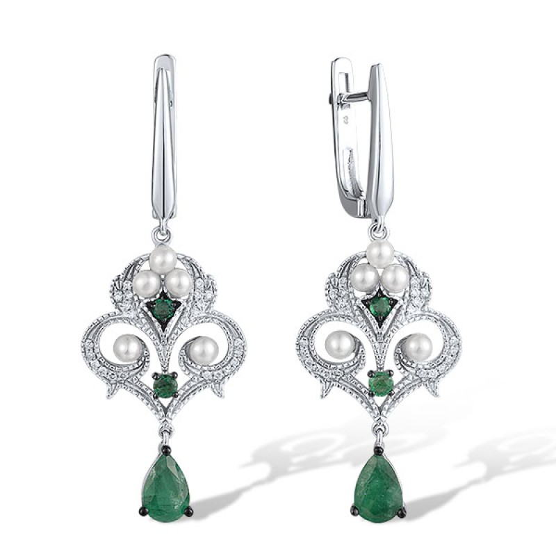 14KWB Earrings Diamond,Emerald,Fresh Water White Pearl (E315066EFP14KWB)