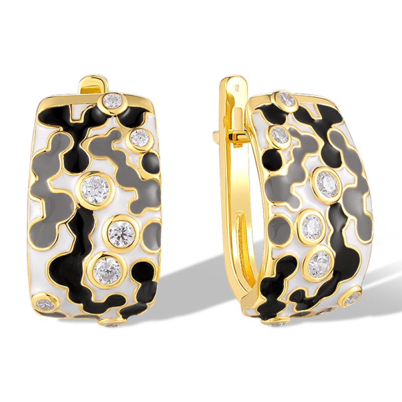 Sterling Silver w/ Yellow Plating Earrings Enamel,White Cubic Zirconia (E320209ENASY925)