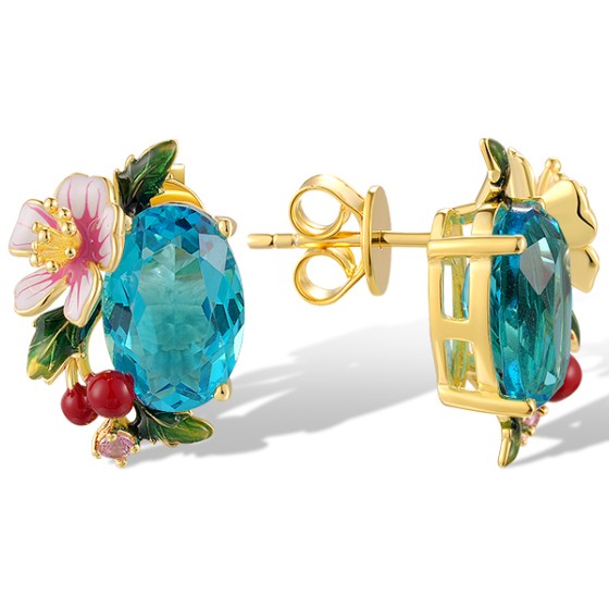 Sterling Silver w/ Yellow Plating Earrings Blue Glass,Created Pink Sapphire,Enamel (E320522ENASY925)