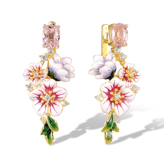Sterling Silver w/ Yellow Plating Earrings Enamel,Pink Glass,White Cubic Zirconia (E320588ENASY925)