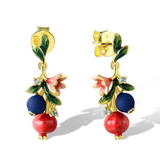 Sterling Silver w/ Yellow Plating Earrings Blue Spinel,Enamel (E320601ENSSY925)