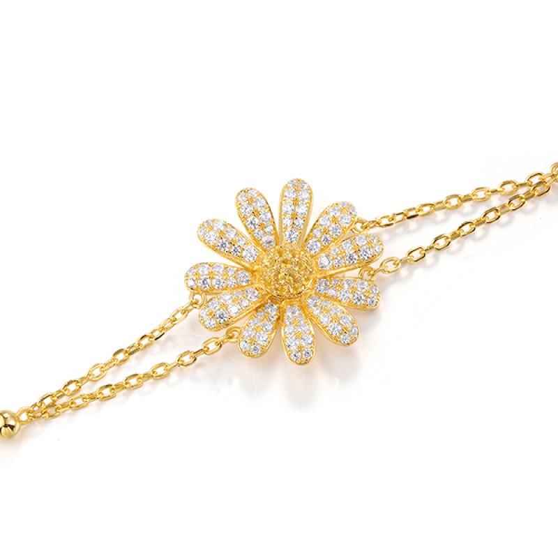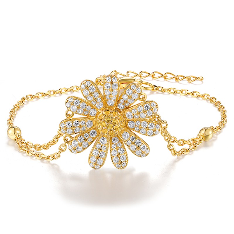 Sterling Silver w/ Yellow Plating Bracelet Synthetic?Yellow?Spinel,White Cubic Zirconia (B320387YWZSY925)