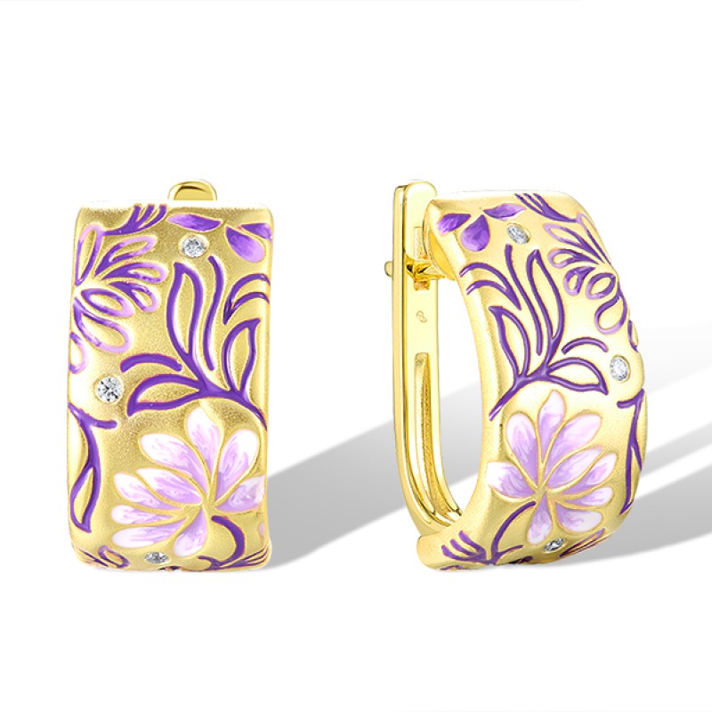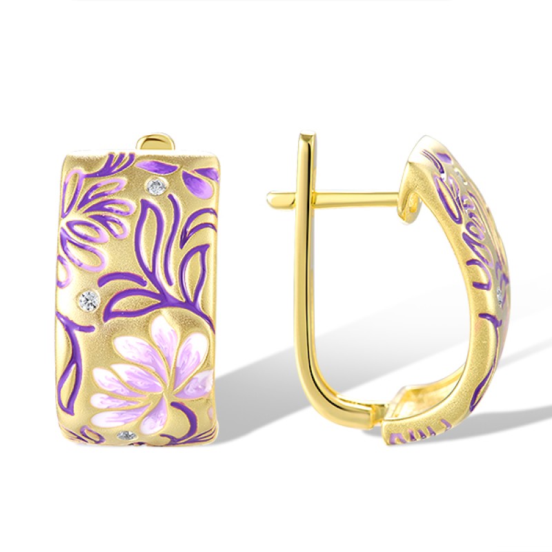 Sterling Silver w/ Yellow Plating Earrings Enamel,White Cubic Zirconia (E320286ENASY925)