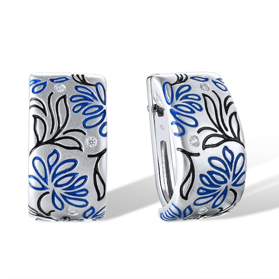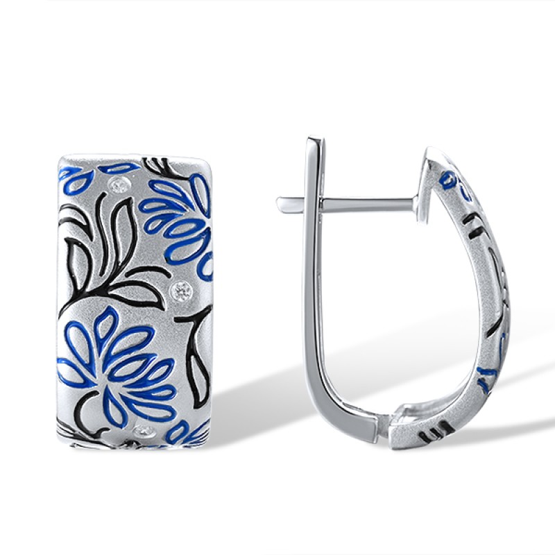 Sterling Silver Earrings Enamel,White Cubic Zirconia (E320285ENA1SL925)