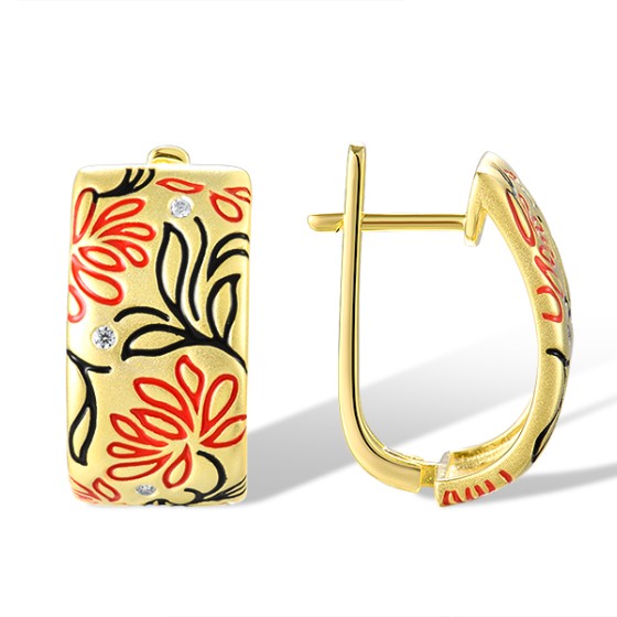 Sterling Silver w/ Yellow Plating Earrings Enamel,White Cubic Zirconia (E320285ENASY925)