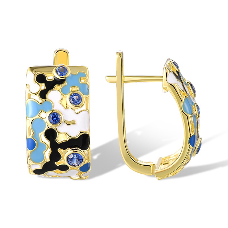 Sterling Silver w/ Yellow Plating Earrings Enamel,Synthetic Blue Spinel (E320210ENASY925)