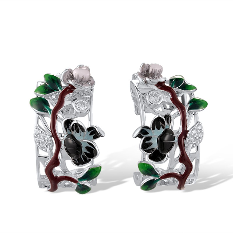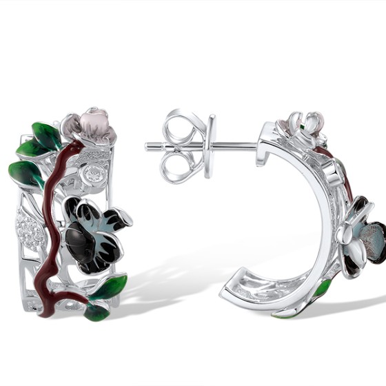 Sterling Silver Earrings Enamel,White Cubic Zirconia (E320020AENA1SL925)