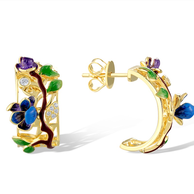 Sterling Silver w/ Yellow Plating Earrings White Cubic Zirconia,Enamel (E320020AENA2SY925)